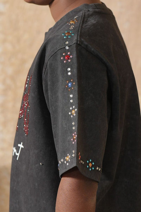 Rare Common Shattered Realities Studded Rhinestone T-Shirt Black
