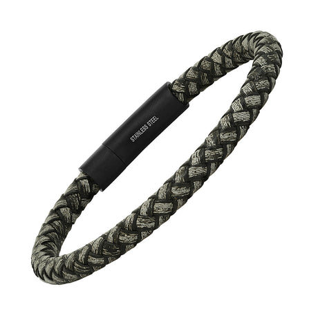 Gray Speckled Leather Braided Bracelet