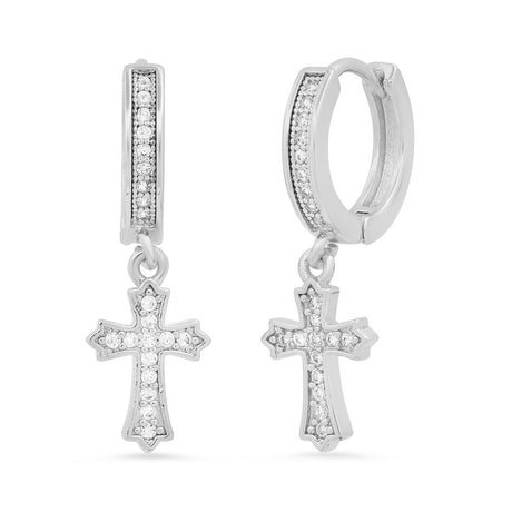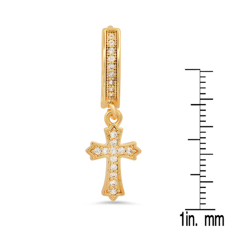 Iced Out Huggie Charm Pendant Brass Earrings with Simulated Diamonds