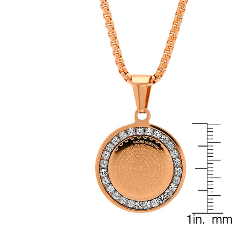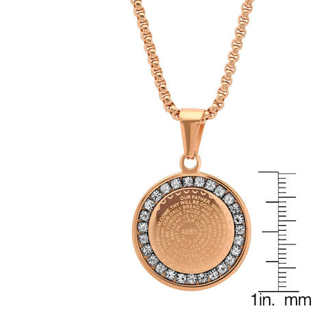 Our Father Prayer Round Pendant With Simulated Diamonds