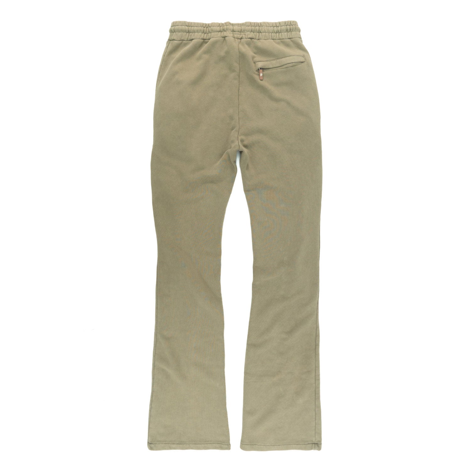 The matching stacked pants follow the theme with heavy rhinestone striping along the legs and a matching “D” logo on the front. The flared stacked fit elongates the silhouette, bringing modern urban style to life.