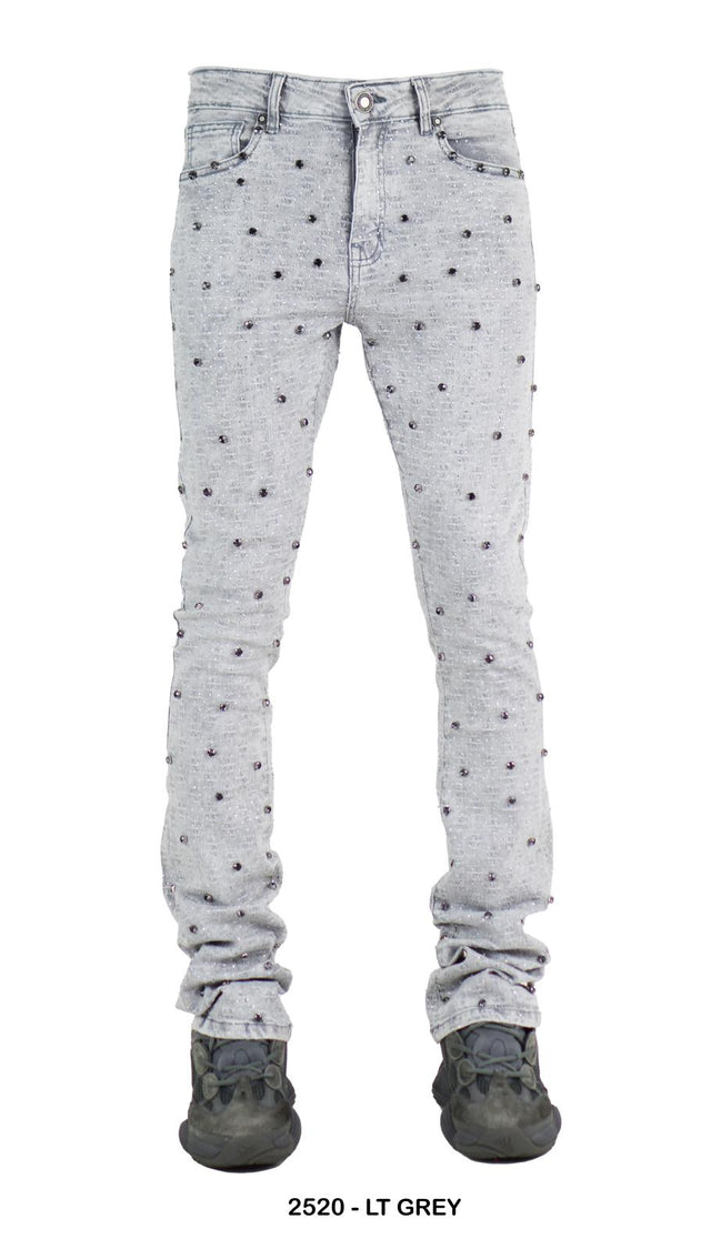 Focus Rhinestone Stud Stacked Jeans Multi Colors