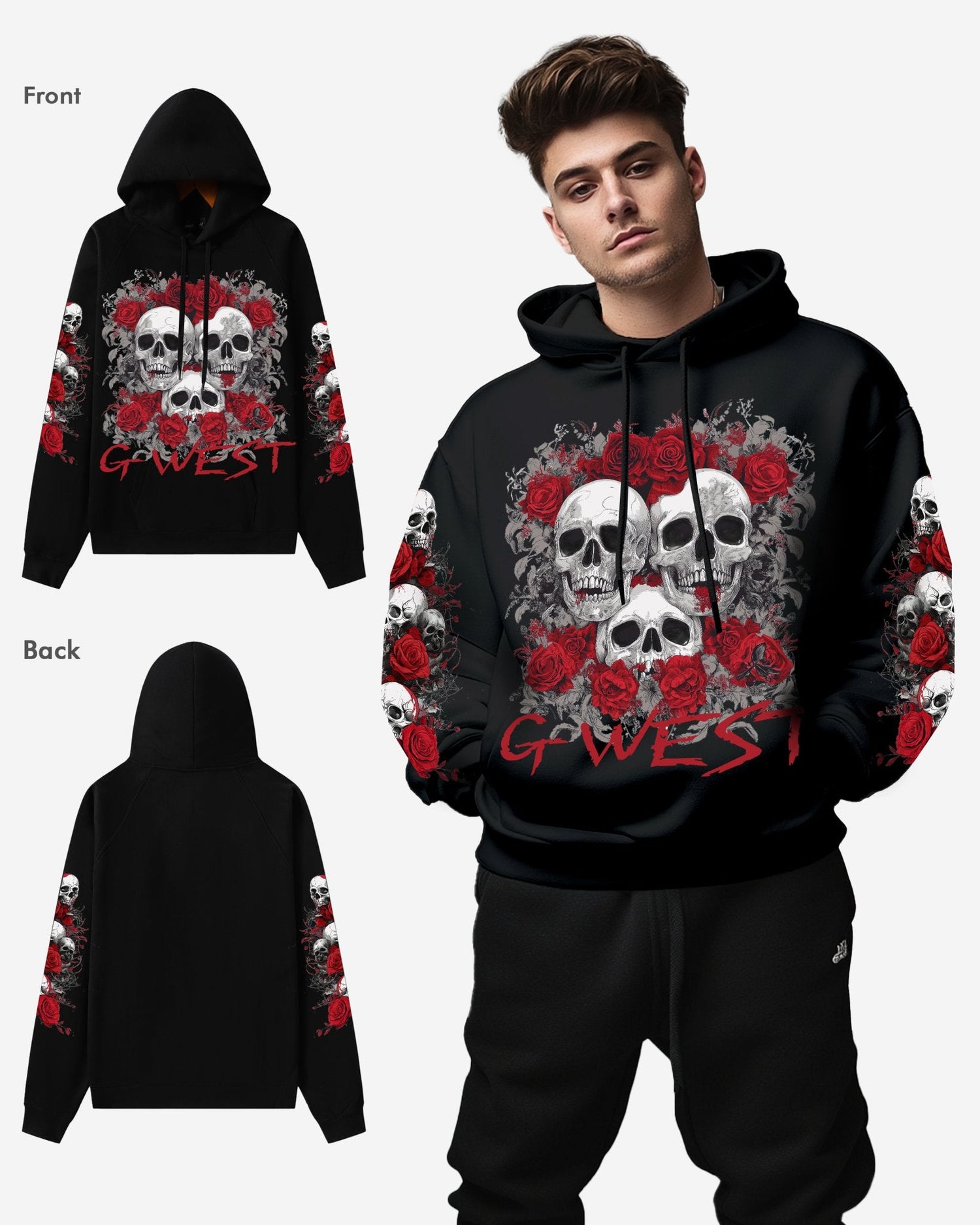 G West Rhinestone Roses And Bones Oversized Hoodie