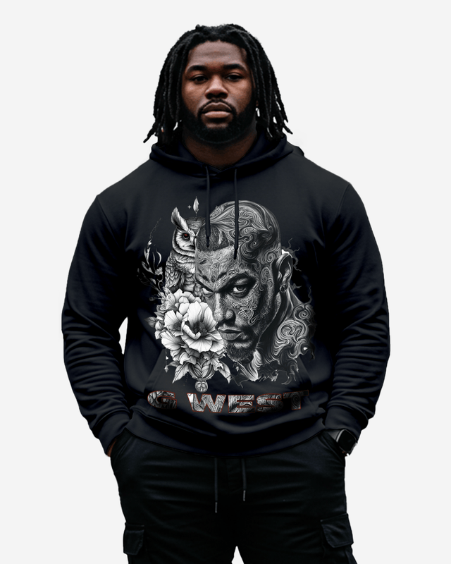 The G West Street Owl Hoodie Big and Tall delivers a unique blend of bold streetwear style and premium comfort, designed specifically for big and tall sizes. Crafted from ultra-soft, durable fabric, this hoodie offers a relaxed fit perfect for all-day wear. Featuring a striking owl graphic with street-inspired details, it symbolizes wisdom, power, and a keen sense of style. Whether you're out on the town or lounging in comfort, this hoodie provides warmth, durability, and standout appeal. Elevate your wardrobe with G West’s signature design, where modern fashion meets timeless symbolism.