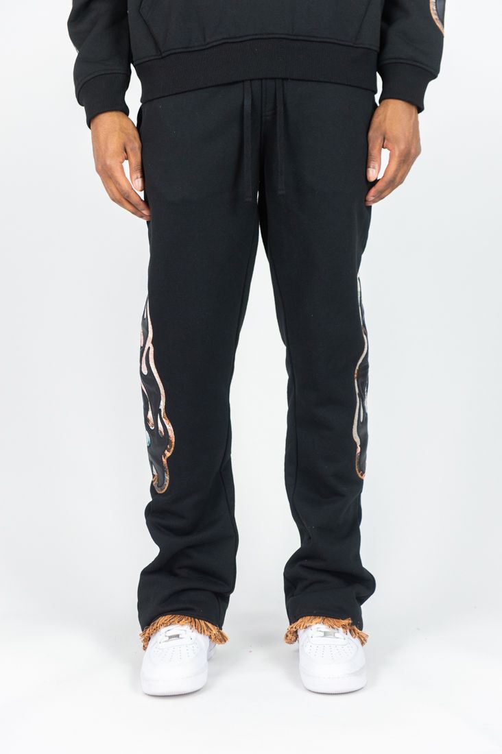 R3BEL FLEECE WITH TAPSTRY PATCH STACKED JOGGER SET - Black / S is backordered and will ship as soon as it is back in stock.