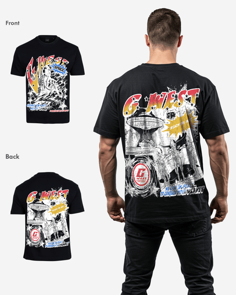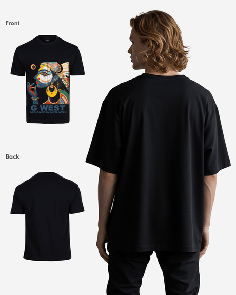 G West Cosmic Sky Ride Double Hit Premium Oversized Tee Front And Back Print