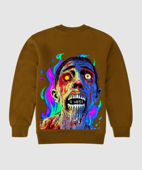 G West Flaming Zombie Crew Neck Hoodie With Zipper