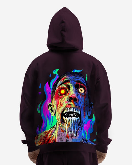 G West Flaming Zombie Hoodie Mens Oversize Style