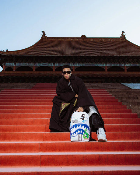 SPRAYGROUND SHARK CENTRAL STENCILS- WHITE DLXSV BACKPACK