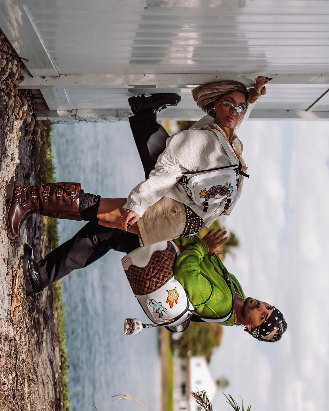 Dimensions: 18" x 6" x 11.5" • Front zipper pocket • Side pockets • Zippered Stash pocket • Separate velour sunglass compartment • Ergonomic mesh back padding • Adjustable Straps for custom sizing • Gold zippers with metal hardware • Metal "Sprayground Authentic" badge • Slide through back sleeve connects to carry-on luggage to free your hands