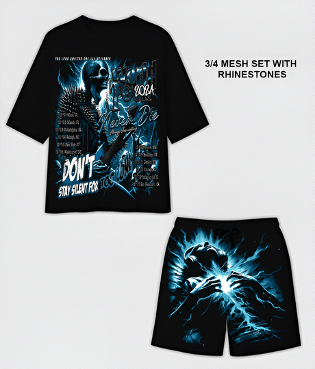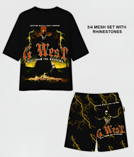 - G West - G WEST RHINESTONE MAN IN GLOW 3/4 SLEEVES MESH SHORT SET $114.00Unit price /Unavailable- 1 color available