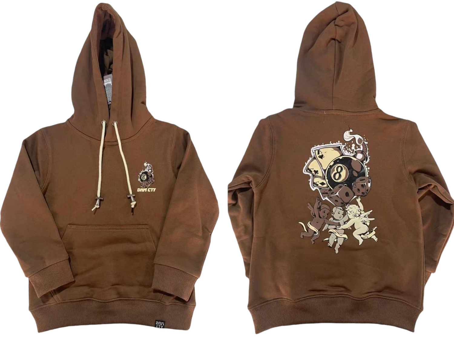 DENIM CITY EIGHT BALL & GAMES HOODIES MULTI COLORS - Brown / S is backordered and will ship as soon as it is back in stock.