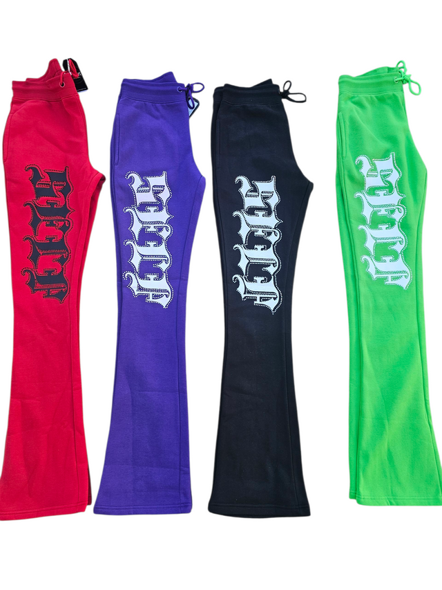 Focus Self Made Rhinestone Stacked Sweatpants Multi Colors