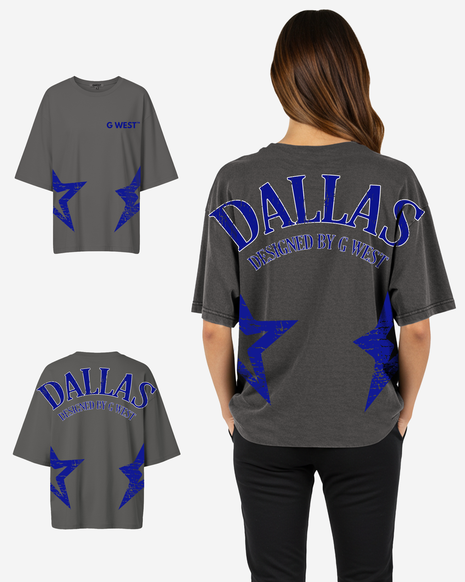 Rep your city in style with the G West Oversized Dallas Logo Tee for Women. Featuring a strong, collegiate-style logo, this tee delivers vintage sportswear vibes with a modern oversized twist. Made from breathable cotton, it keeps you comfy while showing your love for the Lone Star State. Perfect for casual days or street-smart styling.