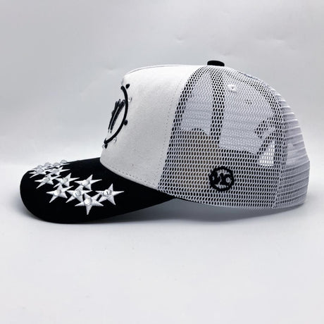 Cult Of Individuality 5 Panel A Frame Trucker Hat With Pearls In White