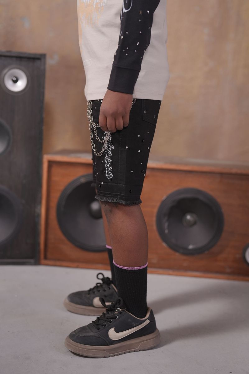 Elite Kids Greatness Embellished Double Waist Rhinestones Chain Baggy Short - Black / 2 is backordered and will ship as soon as it is back in stock.