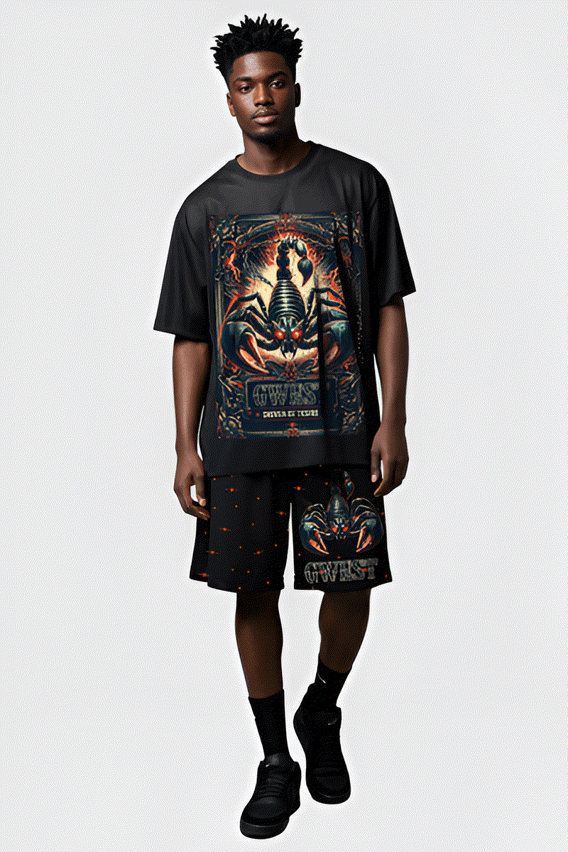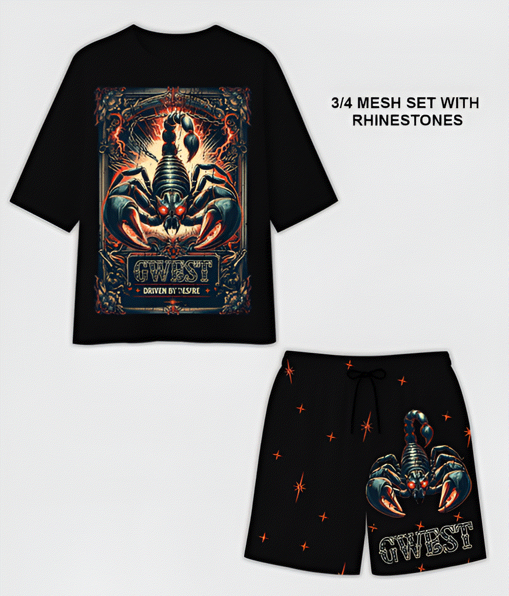 G WEST RHINESTONE SCORPION 3/4 SLEEVES MESH SHORT SET