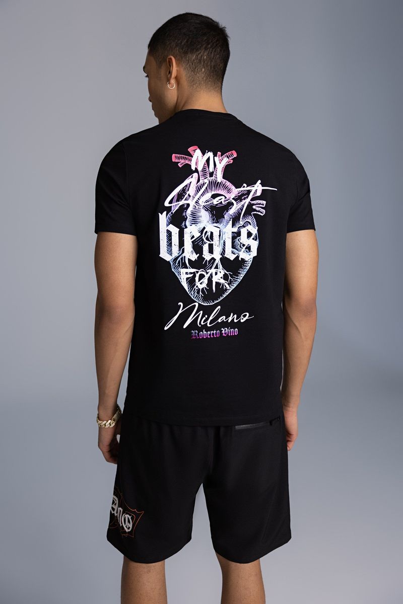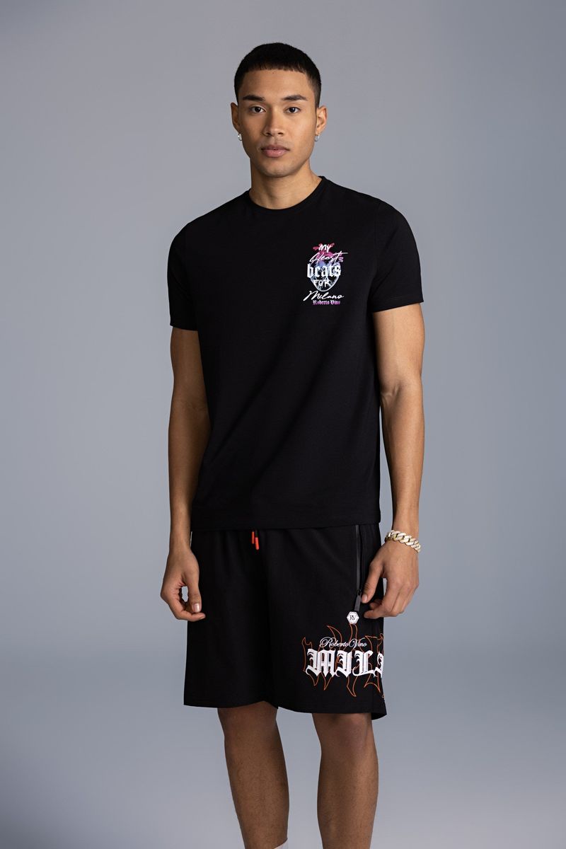 ROBERTO VINO MILANO HEART BEAT T-SHIRT US-24-BLACK