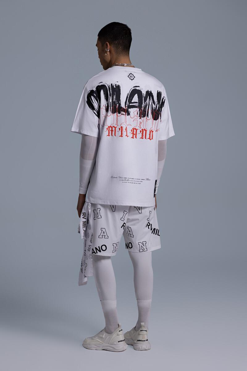 Make a bold statement with our Future T-shirt, a fusion of modern design and luxury craftsmanship. This sage tee features a futuristic aesthetic with 'Milano' emblazoned on the back and 'Roberto Vino' in a captivating light blue to red gradient and with the same captivating light blue to red milano is featured on the front . Crafted from a premium blend of 95% cotton and 5% lycra, it offers a luxurious feel and impeccable fit. Modeled by a 6-foot figure in size L, it exudes confidence and style, perfect for those who dare to stand out.