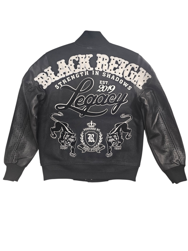 Roku Studio Black Reign Rhinestone Varsity Jacket