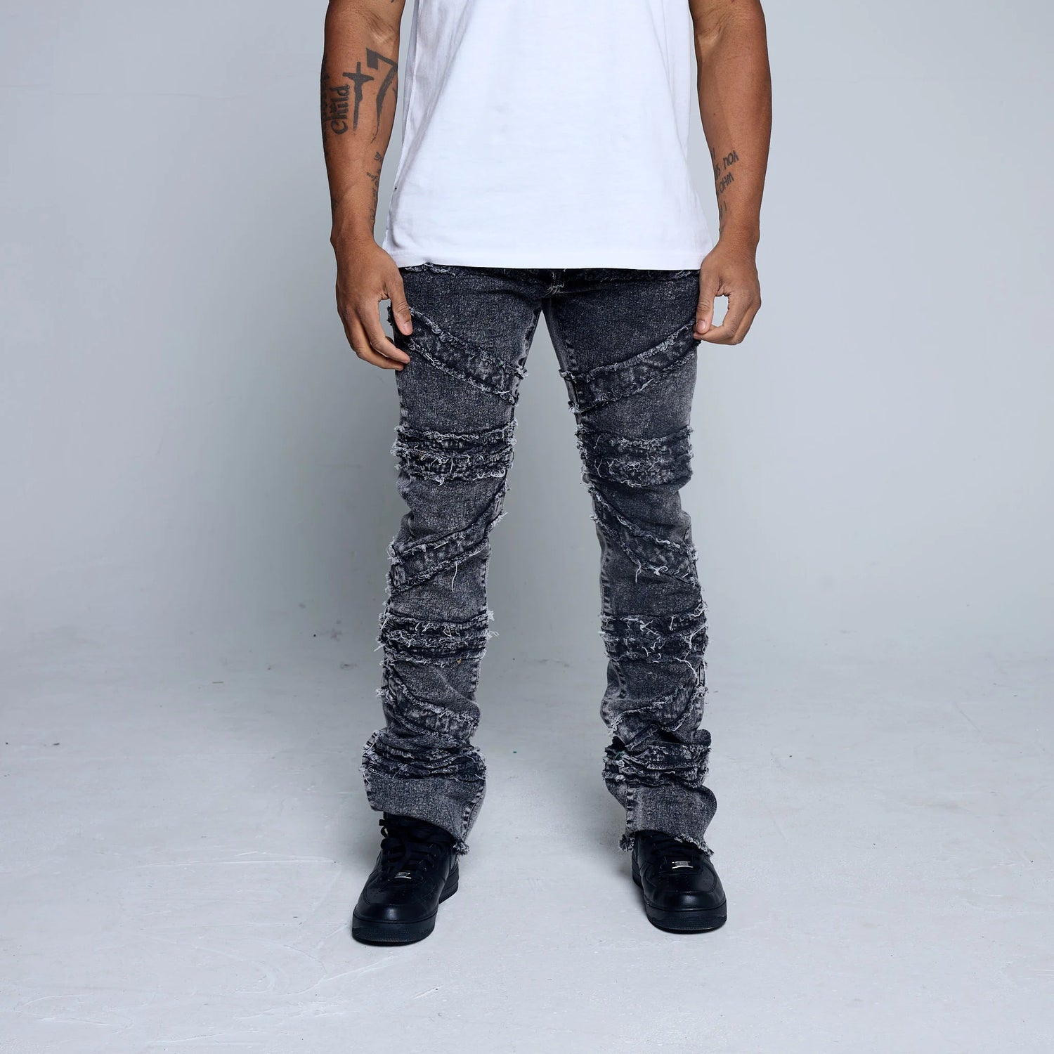 EV STACKED CROSS OVER DENIM JEANS BLACK WASH