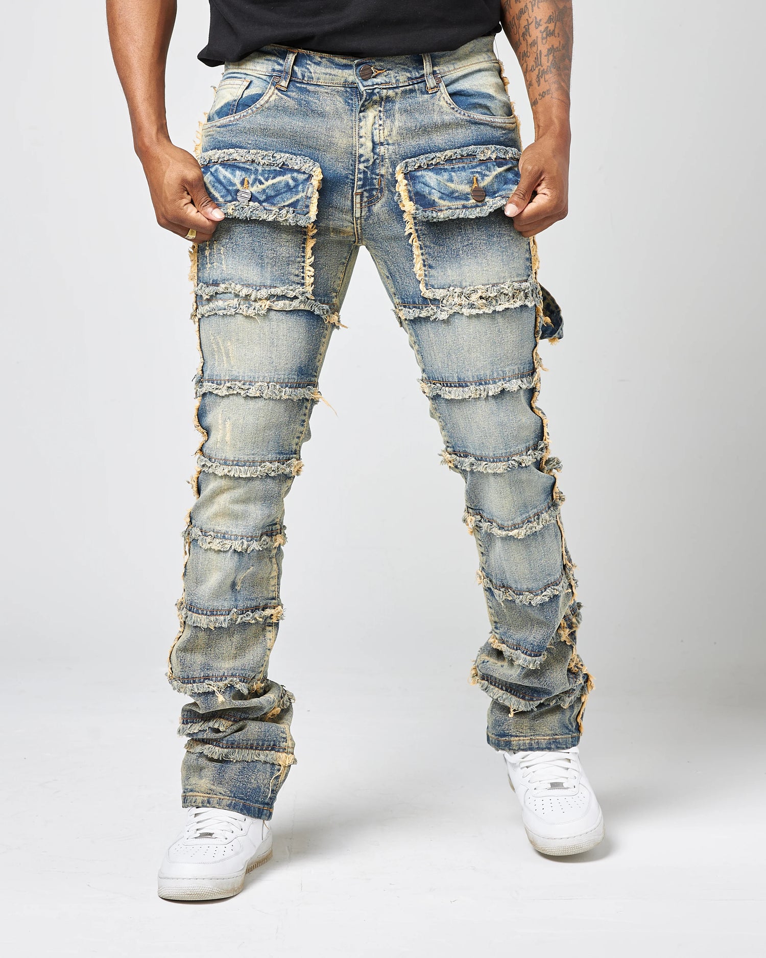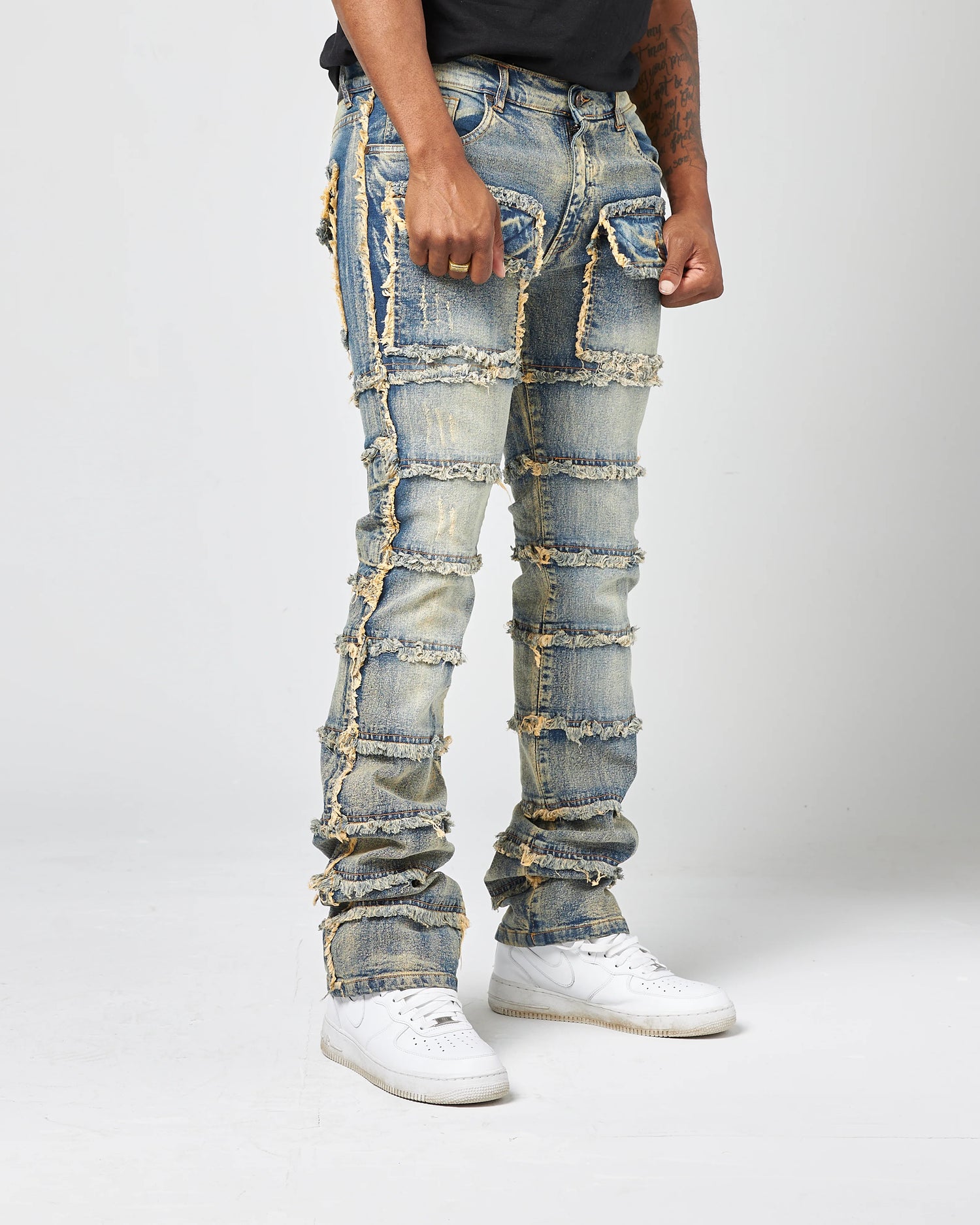 EV STACKED PATCH WORK DENIM JEANS - INDIGO / 29 is backordered and will ship as soon as it is back in stock.