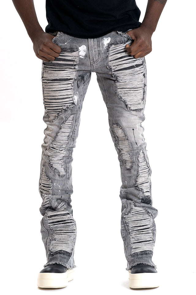 Frost Design F1772 Basel Distressed Stacked Jeans - Gray
