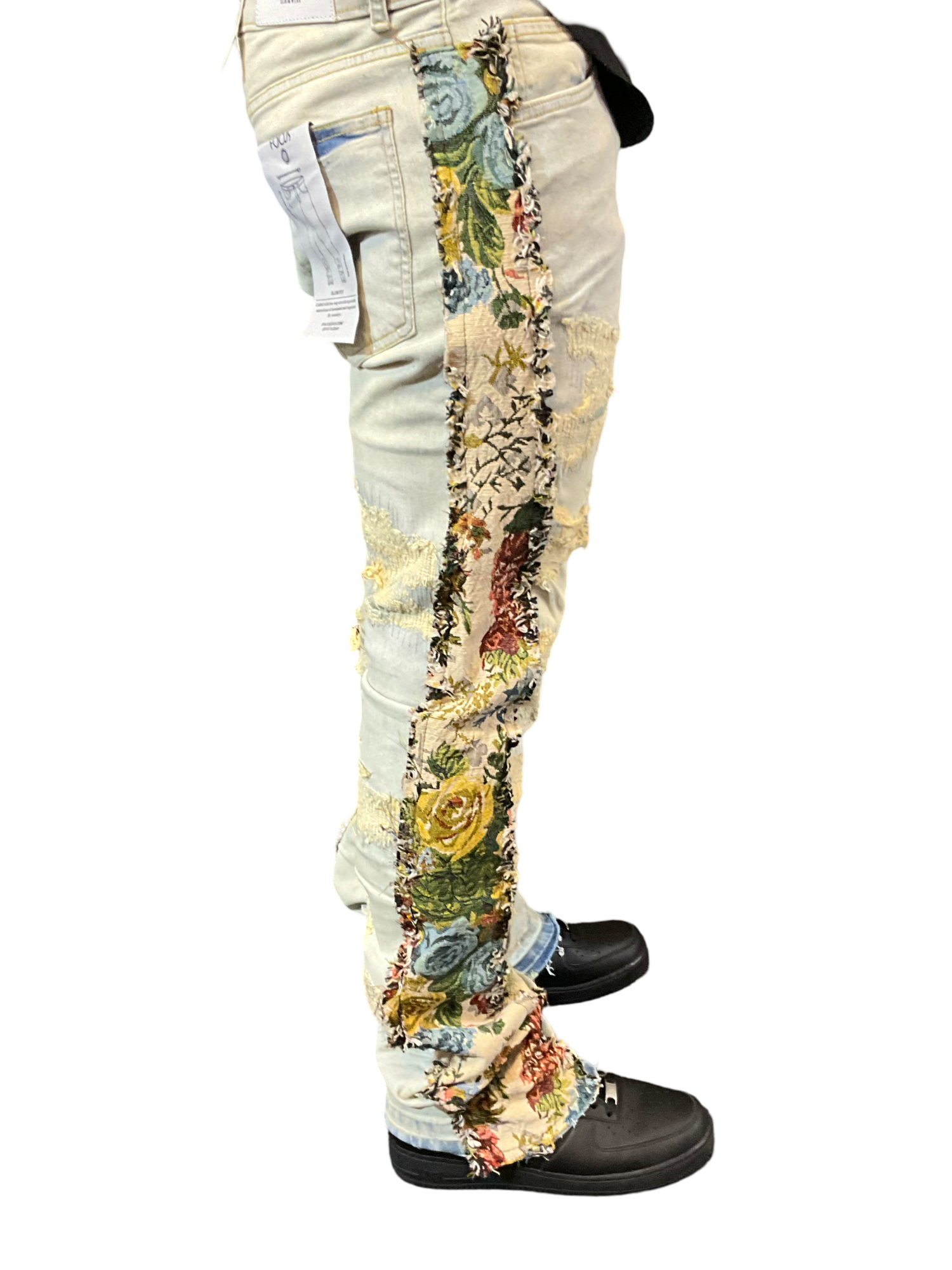 Bring bold energy to your wardrobe with the Focus Slim Fit Stacked Jeans in Tapestry Strip Multi Colors. These jeans feature a dynamic tapestry strip design in multi colors that adds a unique flair to your outfit. The stacked fit creates a contemporary silhouette, perfect for those who love to stand out.