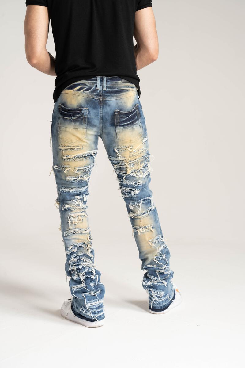 STACK JEANS WITH MULTI RIP & REPAIR Dark Indigo