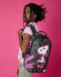 Dimensions: 18" x 6" x 11.5" • Front zipper pocket • Side pockets • Zippered Stash pocket • Separate velour sunglass compartment • Ergonomic mesh back padding • Adjustable Straps for custom sizing • Gold zippers with metal hardware • Metal "Sprayground Authentic" badge • Slide through back sleeve connects to carry-on luggage to free your hands