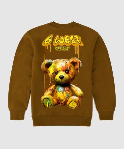 G West Drip Bear Fleece Crewneck With Invisible Zippers