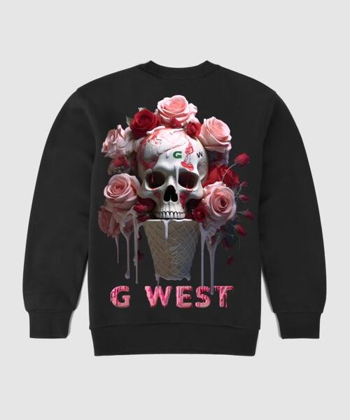 G West Ice Cream Skull Fleece Crewneck With Invisible Zippers