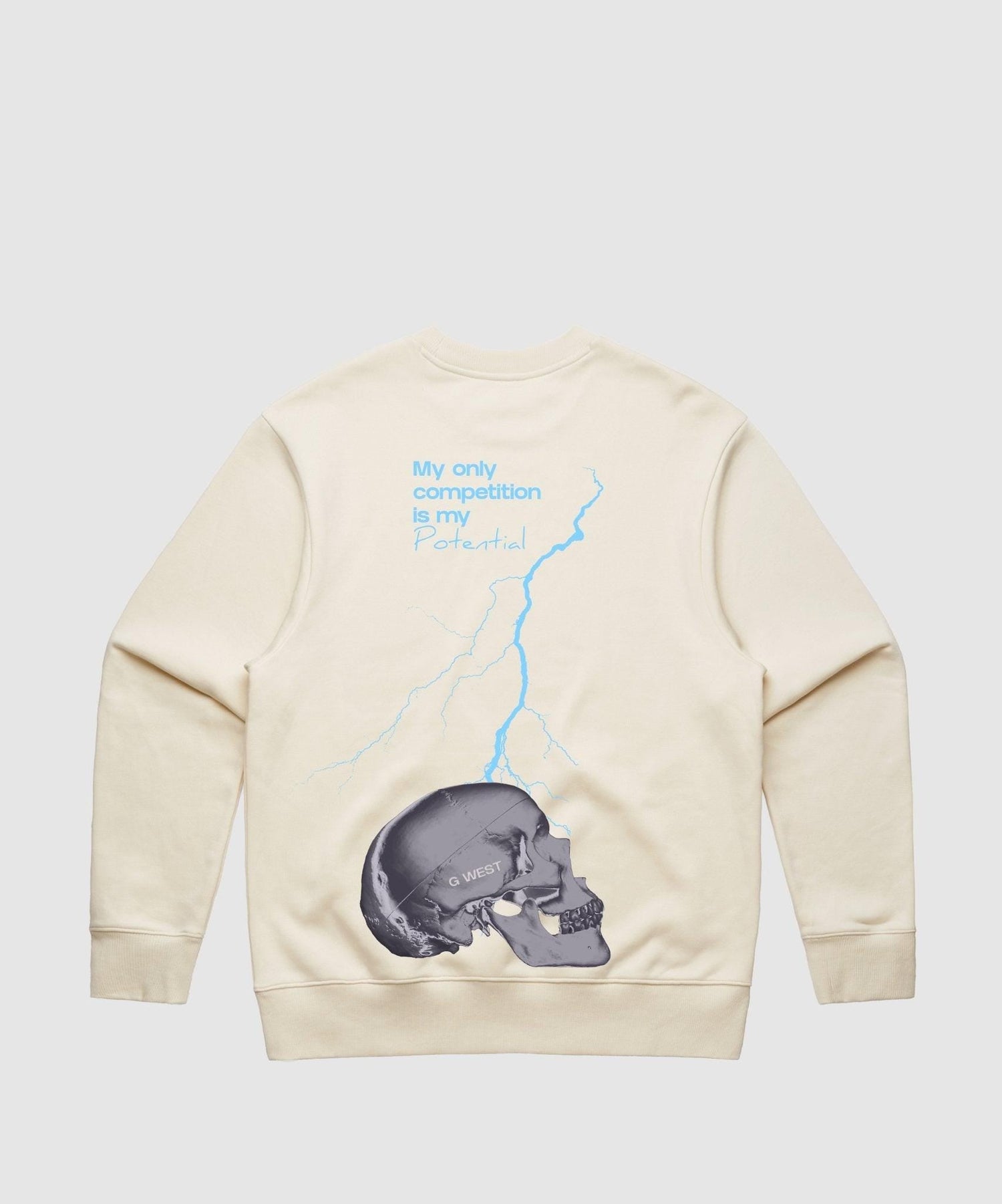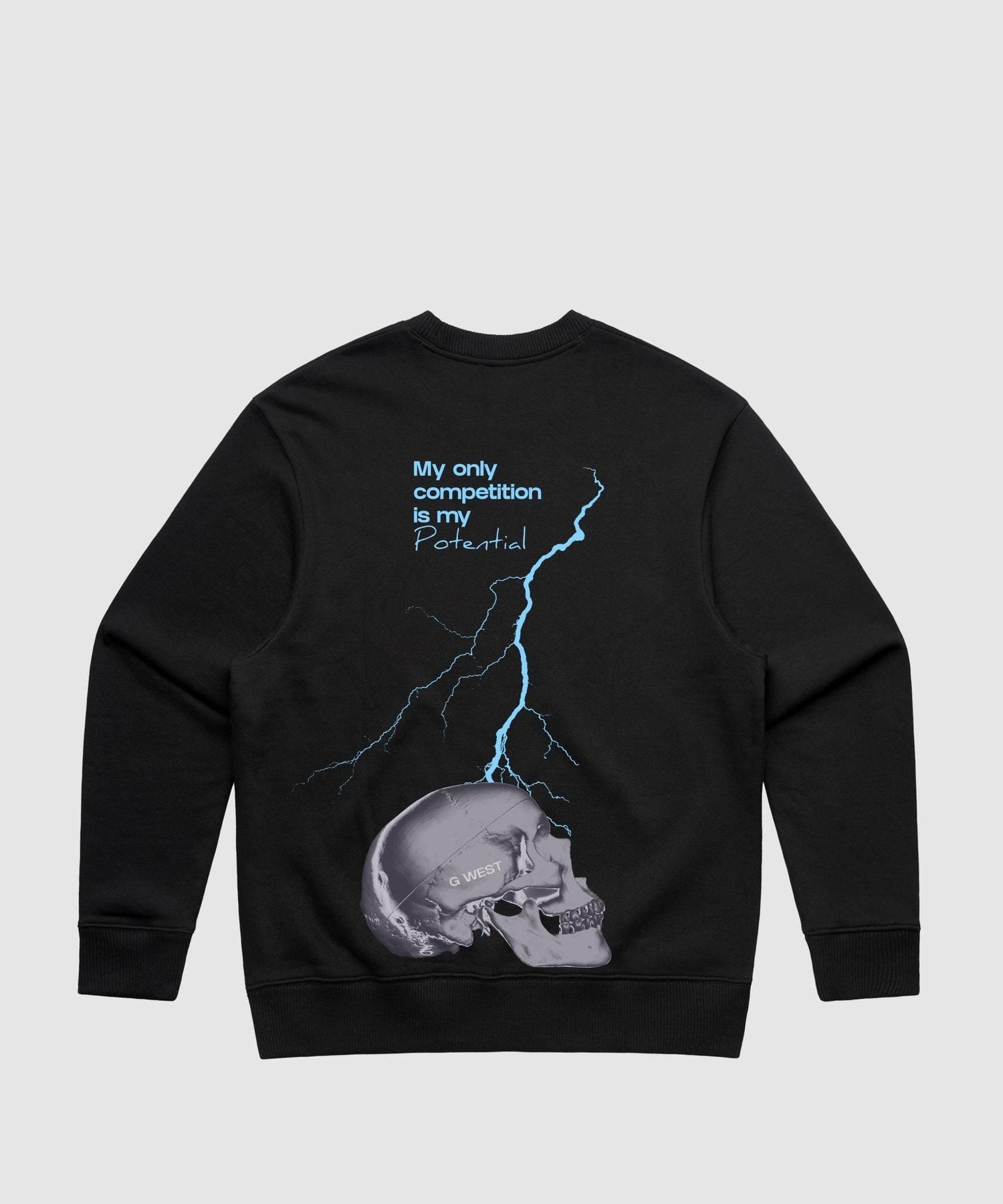 Illuminate your style with the G WEST Lightning Skull Heavy Premium Crewneck. Featuring a striking graphic of a skull electrified by lightning, this crewneck makes a bold statement with its edgy and dynamic design. Crafted from heavyweight, premium fabric, it delivers outstanding warmth and durability, making it ideal for cooler weather. The relaxed fit, combined with ribbed cuffs and hem, ensures a comfortable and stylish wear. Perfect for layering or making a statement on its own, this crewneck merges high-impact visuals with top-notch quality for a standout addition to your wardrobe.