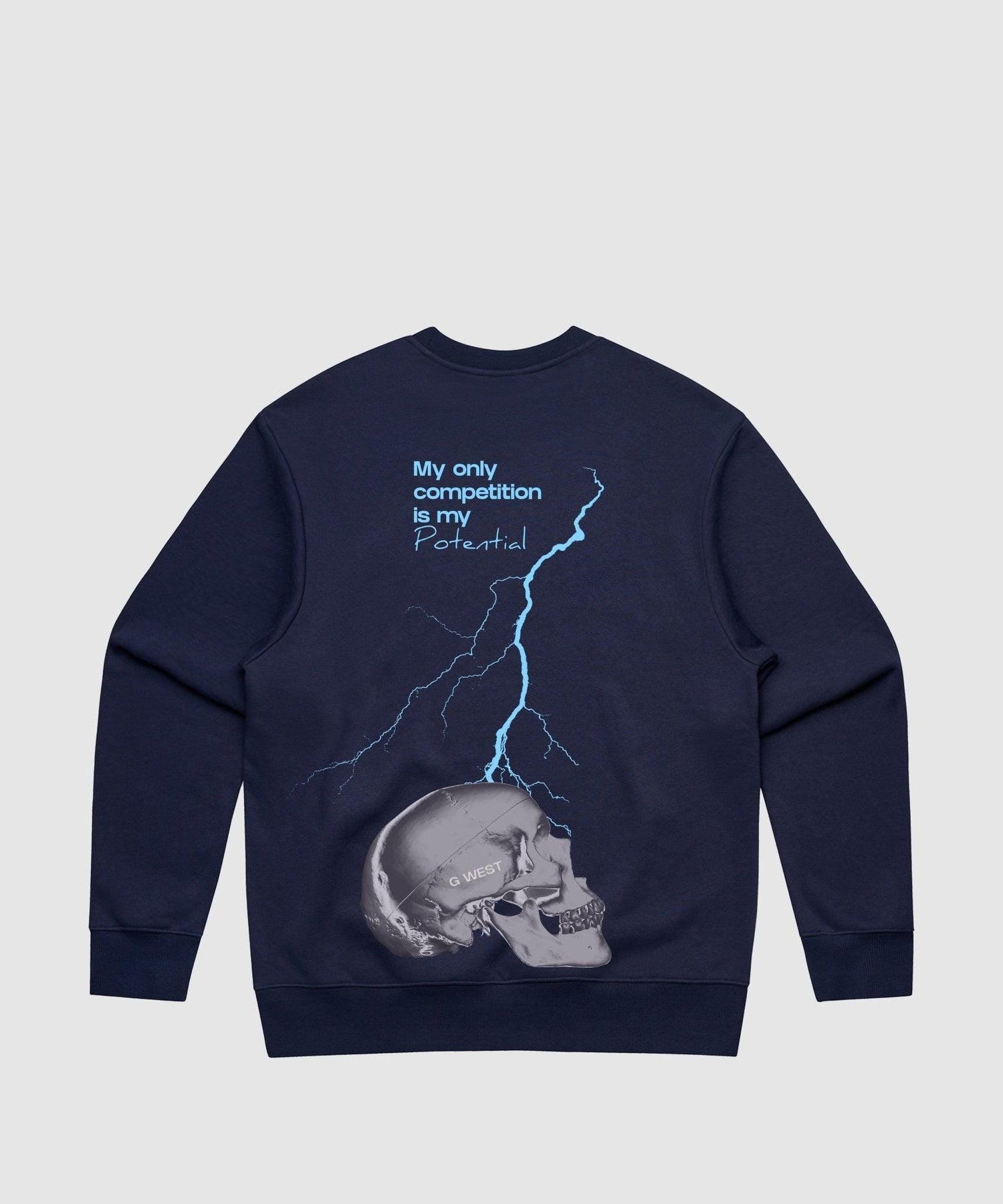 G West Lighting Skull Heavy Premium Crewneck - Navy / XS is backordered and will ship as soon as it is back in stock.