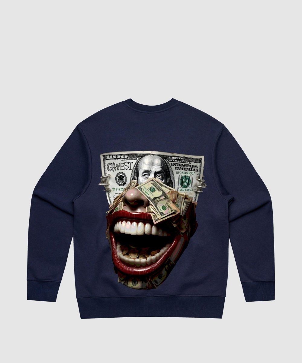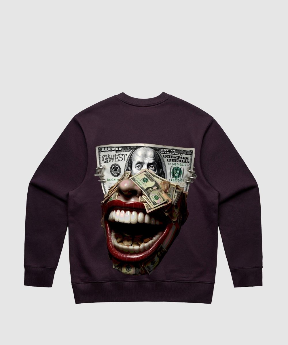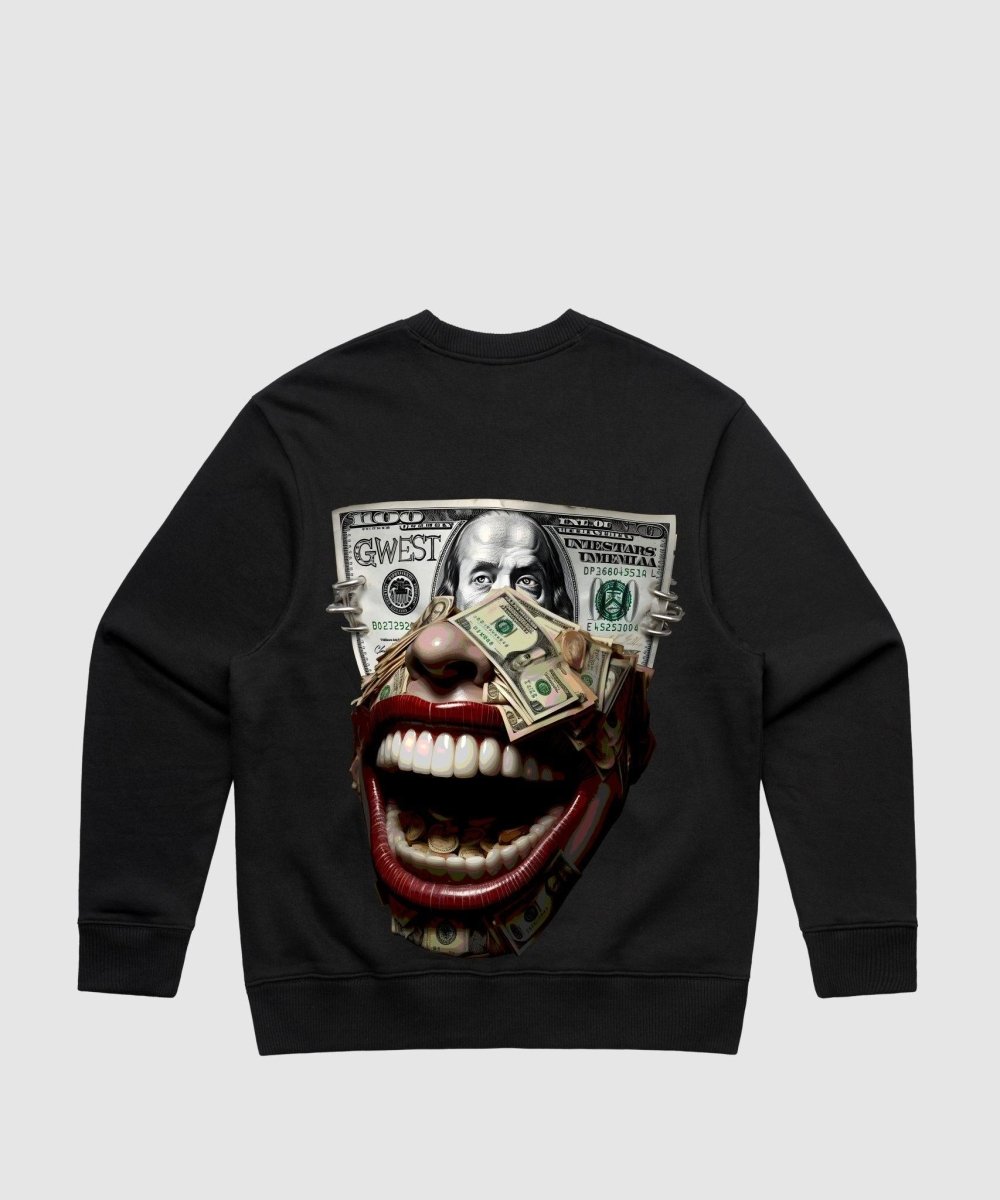 Make a statement with the G West Money Mouth Heavy Premium Crewneck. This standout piece features a bold graphic of a mouth overflowing with cash, blending striking imagery with a touch of rebellion. Crafted from a top-tier, heavy-weight cotton blend, this crewneck ensures both comfort and durability. Its classic design is enhanced with ribbed cuffs and hem for a snug fit, while the soft, plush fabric keeps you warm and cozy. Ideal for making a fashion statement or relaxing in style, the G West Money Mouth Crewneck is a must-have for those who want to combine edgy aesthetics with everyday comfort.