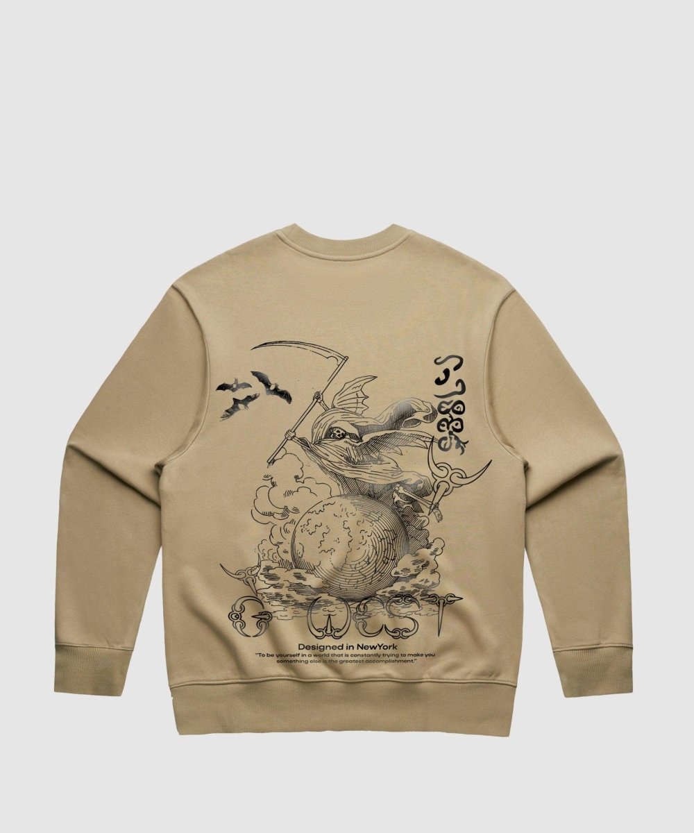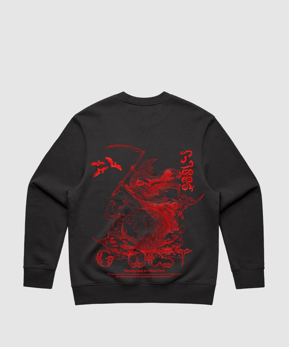 Embrace a dramatic edge with the G WEST Reaper World Heavy Premium Crewneck. This striking crewneck features a compelling Reaper graphic that adds a dark, mysterious vibe to your casual wardrobe. Crafted from heavy, premium fabric, it ensures outstanding warmth and durability, making it perfect for cooler days. The relaxed fit provides all-day comfort and a laid-back look, ideal for both lounging and urban outings. With its bold design and superior quality, the G WEST Reaper World Crewneck blends unique style with exceptional comfort for a standout piece.
