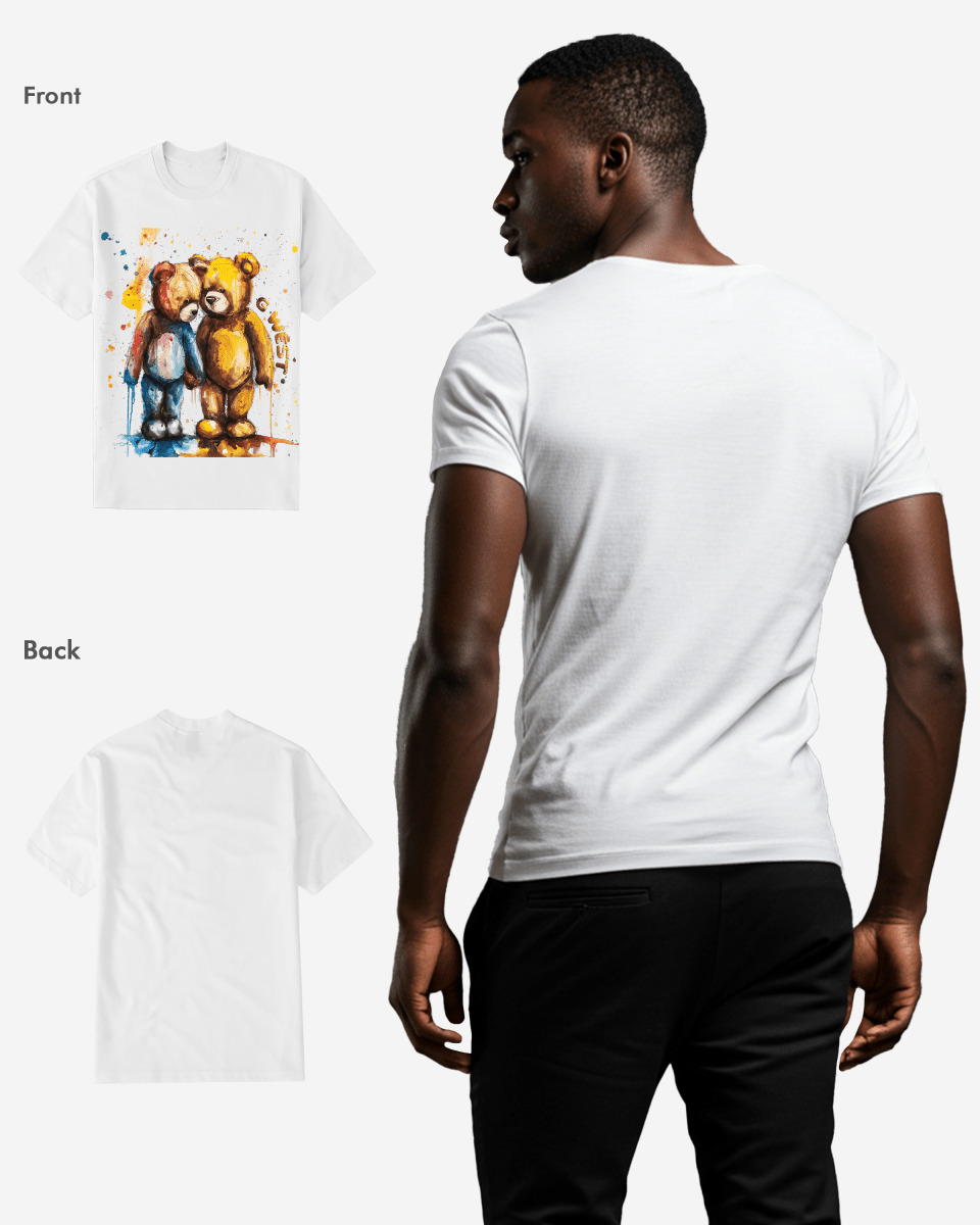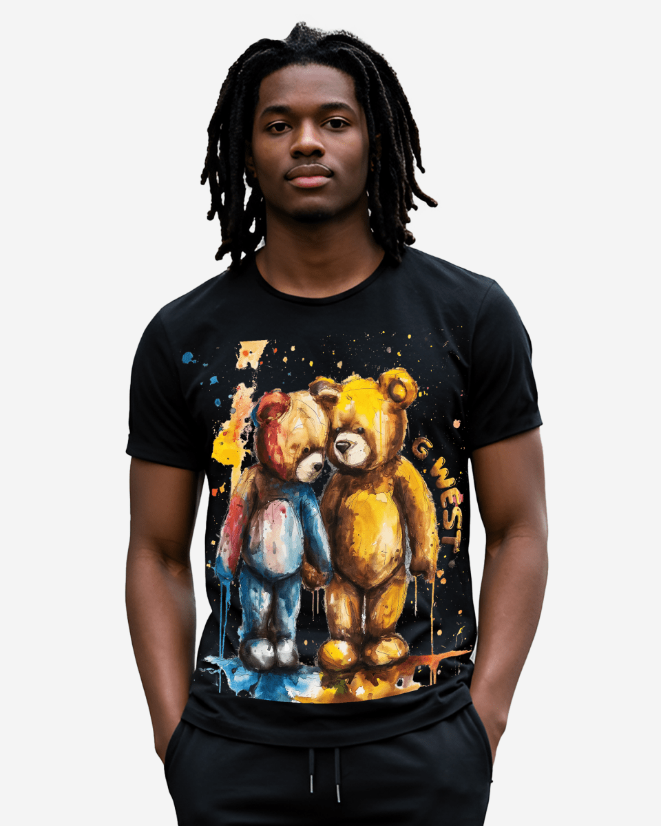 Elevate your casual wardrobe with the G WEST Teddy Bear Tee, a perfect blend of comfort and style. Crafted from soft, breathable cotton, this tee features a playful teddy bear graphic that adds a touch of whimsy to your outfit. The classic crew neck and relaxed fit ensure all-day wearability, while the high-quality print maintains its vibrant look wash after wash. Ideal for lounging at home or adding a fun element to your everyday look, the G WEST Teddy Bear Tee is a must-have for any wardrobe.