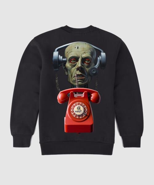 G West Telephone Head Fleece Crewneck With Invisible Zippers - Black / S is backordered and will ship as soon as it is back in stock.