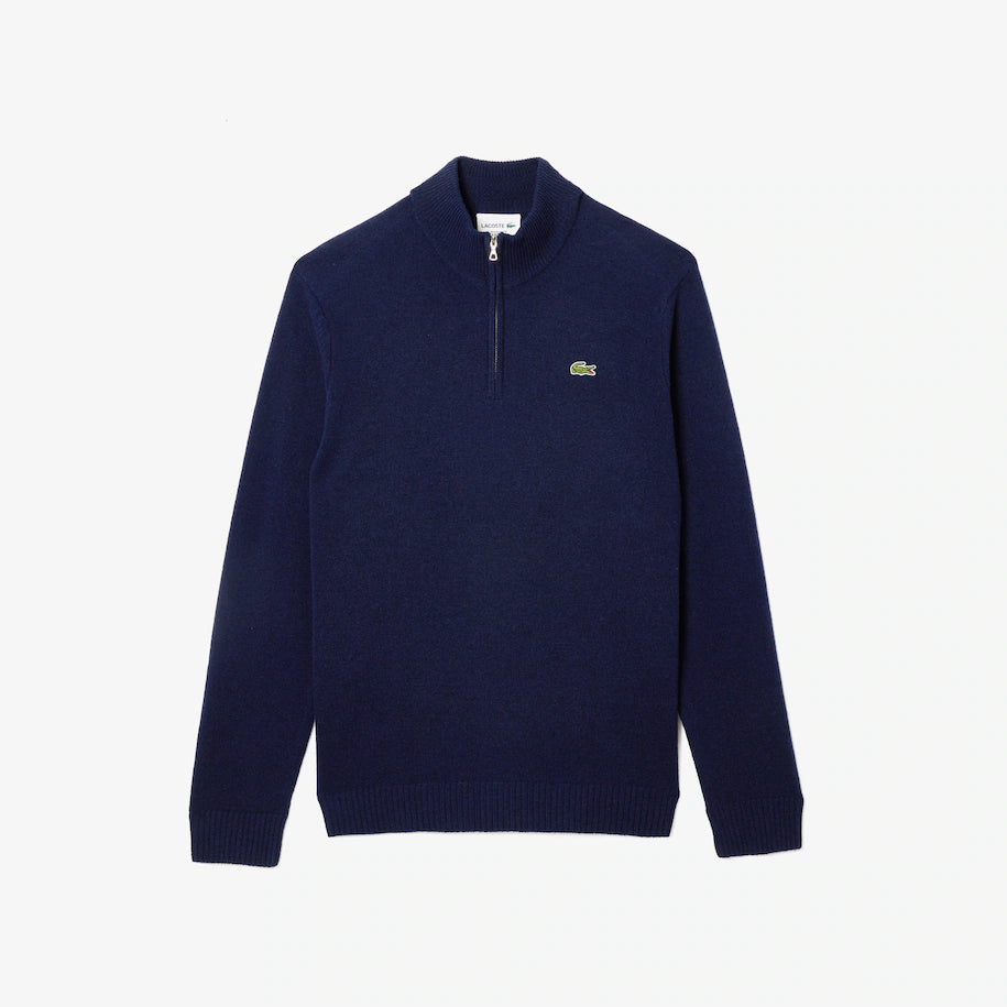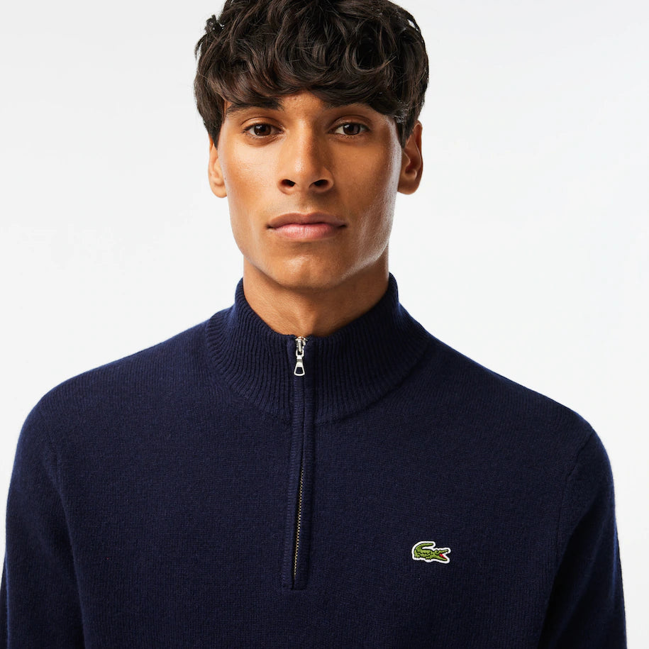 LACOSTE MEN’S HALF-ZIP WOOL SWEATER NAVY