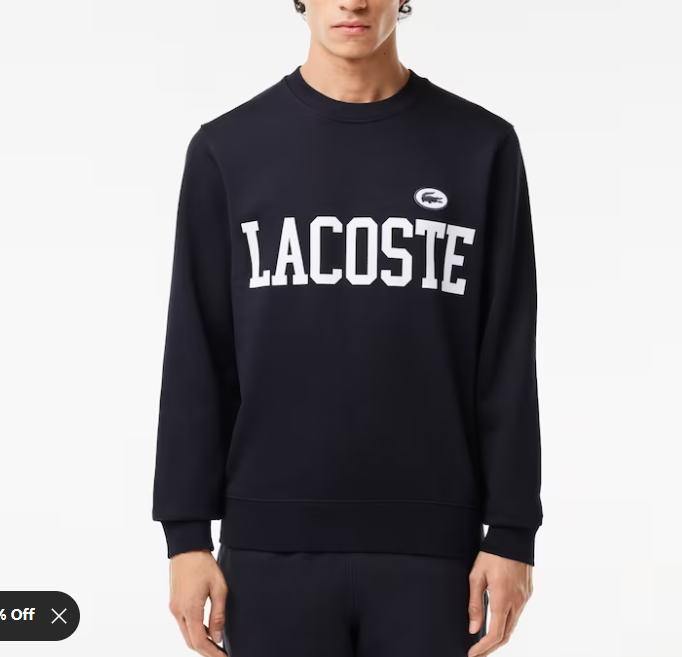Step out in croco-style with this premium fleece sweatshirt, finished with an iconic badge and flocked print. 100% Lacoste. The ultimate in everyday comfort.