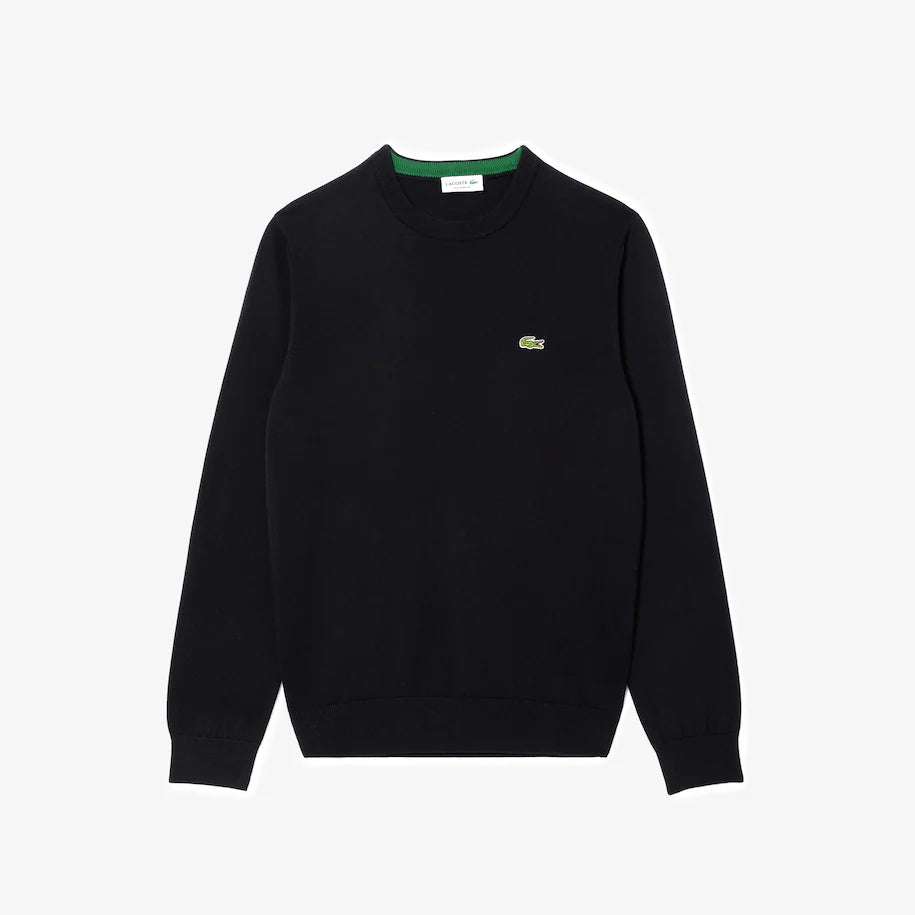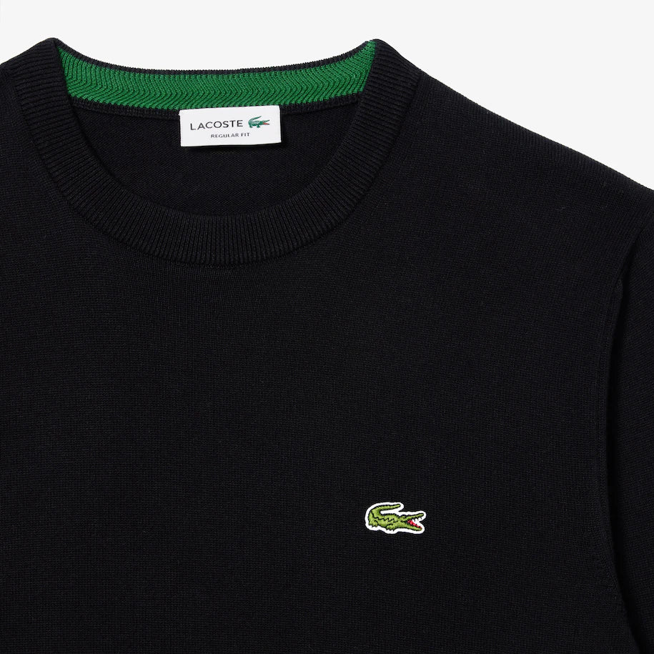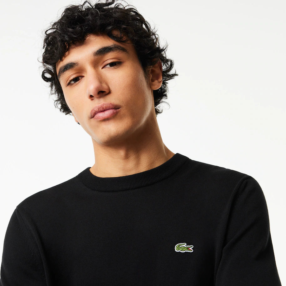 LACOSTE MEN'S ORGANIC COTTON CREW NECK SWEATER BLACK