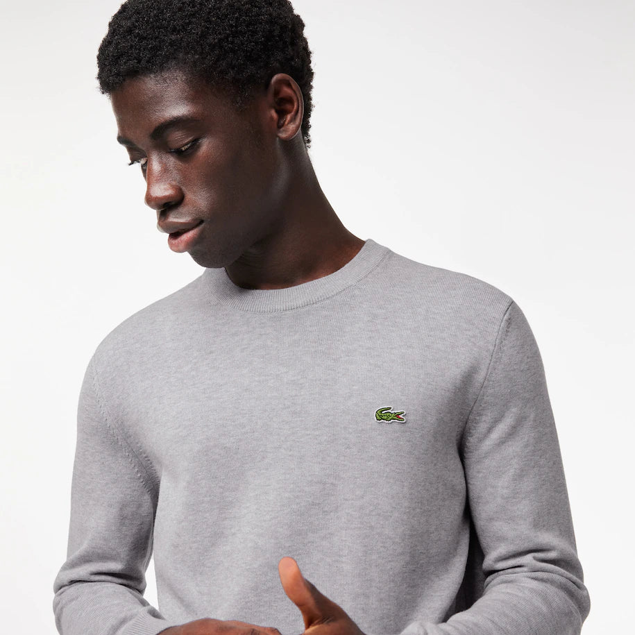LACOSTE MEN'S ORGANIC COTTON CREW NECK SWEATER GREY
