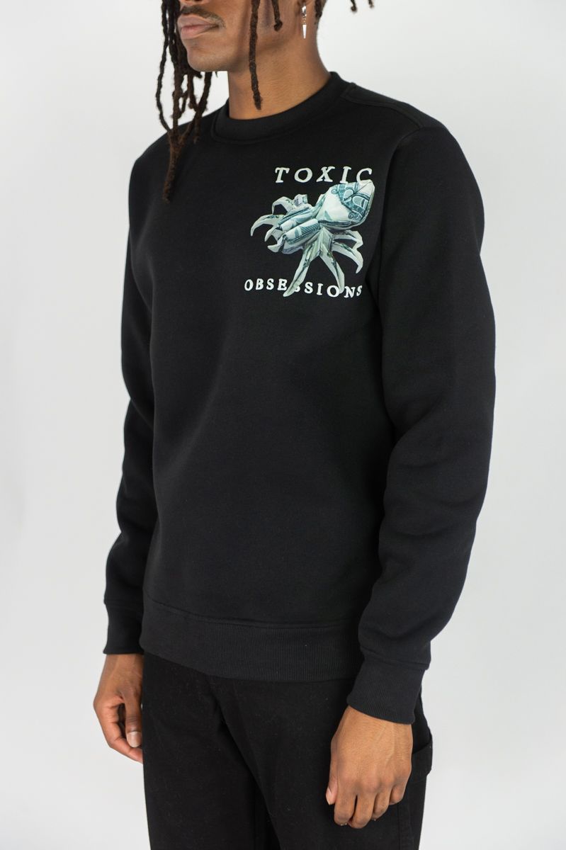 REBEL MINDS FLEECE CREW NECK SWEATER MENTAL POISON BLACK