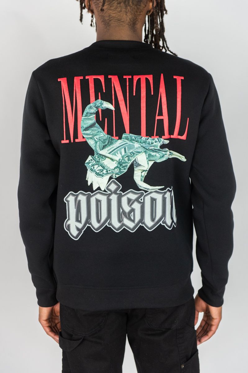 REBEL MINDS FLEECE CREW NECK SWEATER MENTAL POISON BLACK - Black / S is backordered and will ship as soon as it is back in stock.
