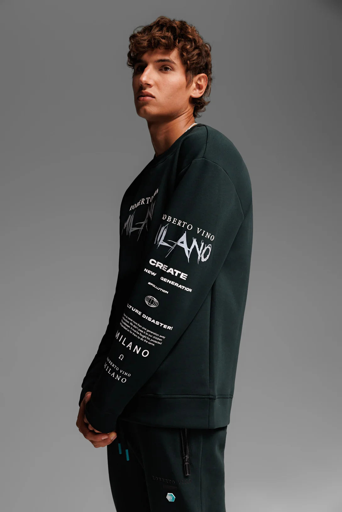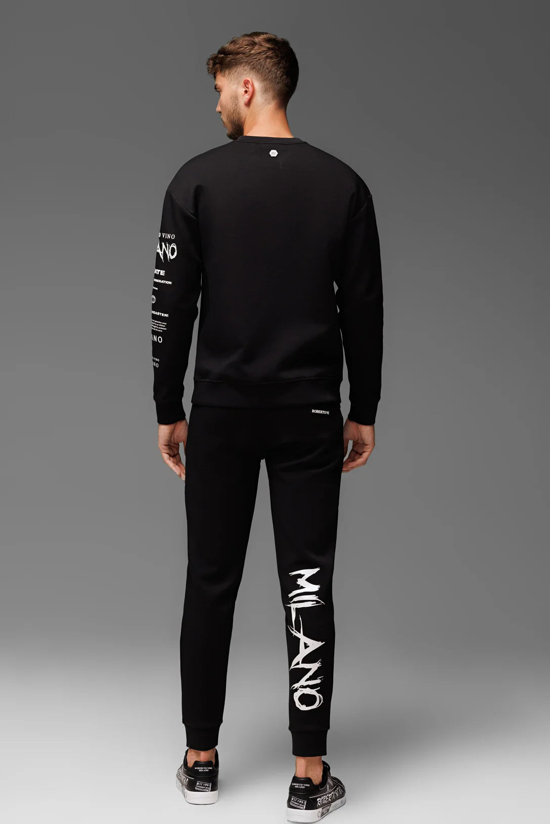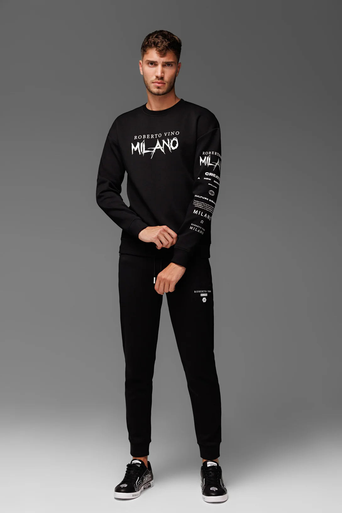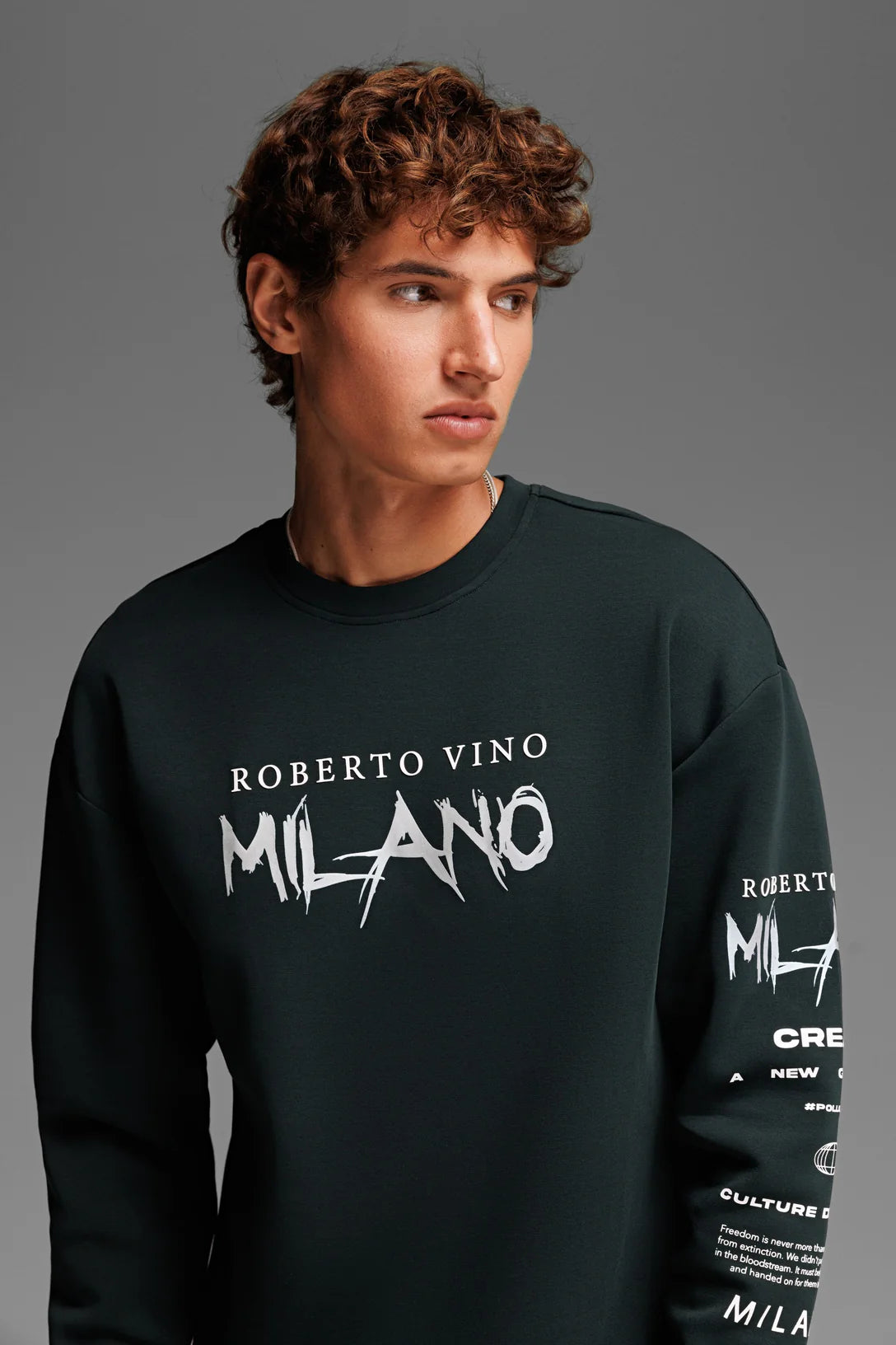 The Milano Sweater from the Milano collection offers a refined blend of comfort and contemporary design. Crafted from a premium mix of 78% cotton, 15% lycra, and 7% polyester, this sweater ensures a soft, flexible, and durable fit. The front features the iconic "Roberto Vino Milano" branding, accented with sleek graphics that add a modern edge to the minimalist design.