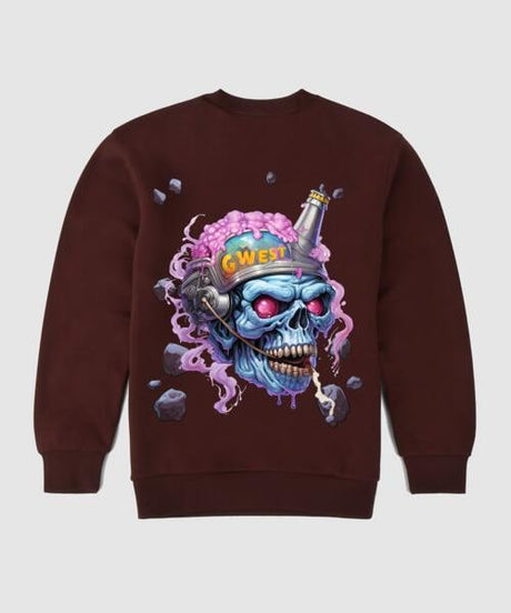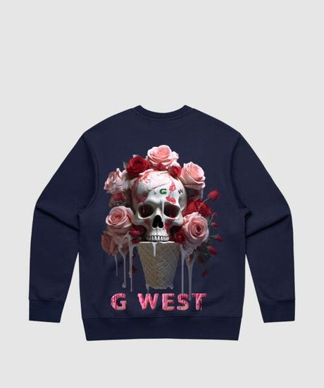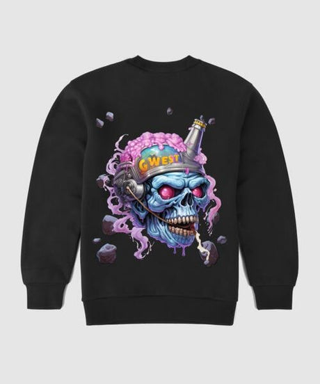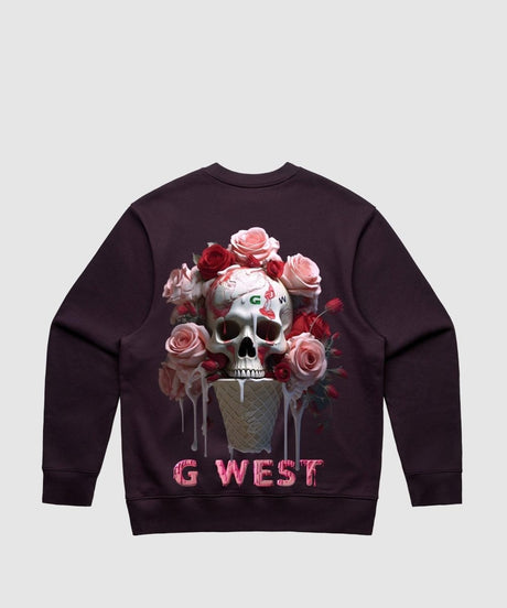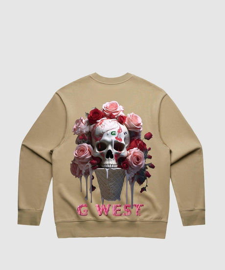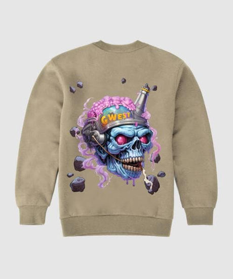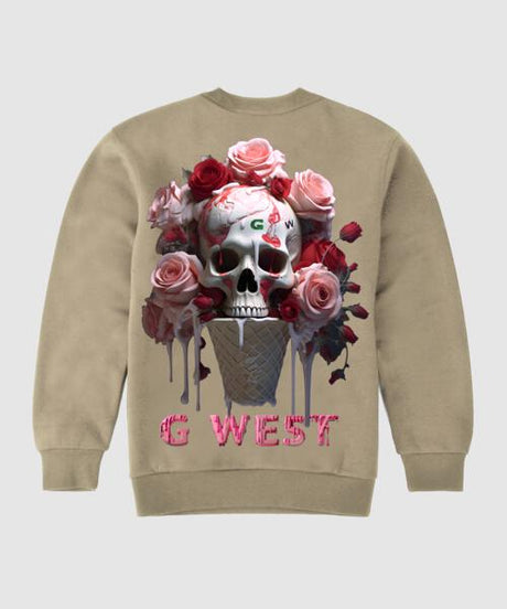 G West Ice Cream Skull Fleece Crewneck With Invisible Zippers