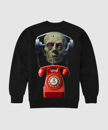 G West Telephone Head Fleece Crewneck With Invisible Zippers