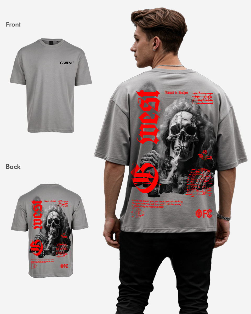 Make a striking impression with the G West Oversized Smoke Skull Tee. Designed with a generous, oversized fit, this tee offers a relaxed, contemporary silhouette that combines comfort with style. Crafted from high-quality, soft cotton, it provides a smooth, breathable feel for all-day wear. The standout smoke skull graphic on the front adds a bold, edgy touch, making it a standout piece in your wardrobe. Ideal for casual outings or adding a unique flair to your look, this tee pairs effortlessly with jeans, shorts, or joggers, making it a versatile and eye-catching choice.