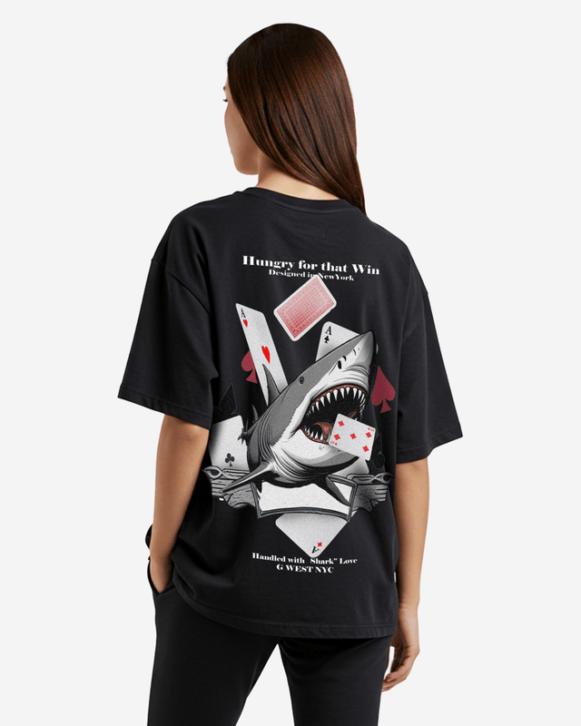 Dive into daring fashion with the G West Oversized Spade Of Sharks T-Shirt for Women. Featuring an edgy shark and spade design, this tee is made for fearless dressers and rule breakers. Soft cotton ensures comfort, while the oversized shape offers a rebellious, relaxed vibe. Whether you’re surfing street style or just making waves, this tee demands attention.