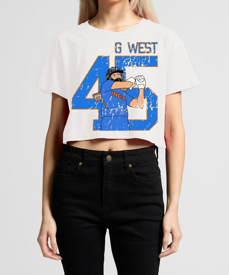 - G West - G West Women Cricket India King-45 White Crop T-Shirt $75.00Unit price /Unavailable- 1 color available